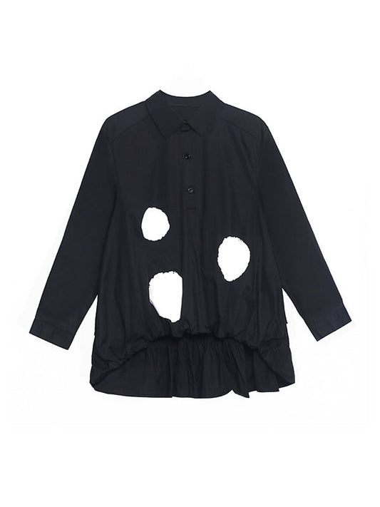 Long Sleeves Loose Pleated Polka-Dot Split-Joint Lapel Blouses