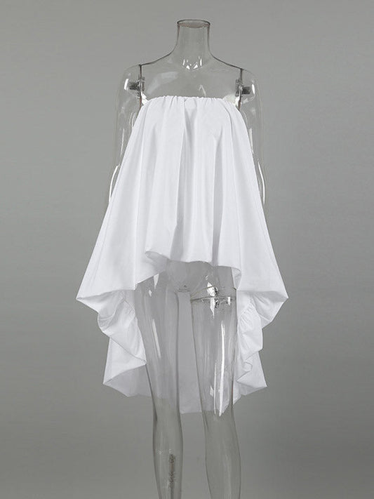 High-Low Sleeveless Elasticity Pleated Solid Color Split-Joint Tube Blouses&Shirts Tops