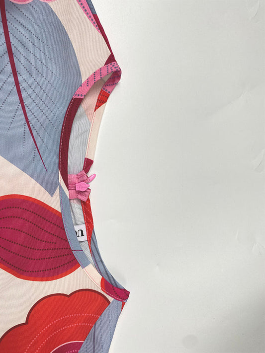 A-Line Loose Contrast Color Drawstring Flower Print Pleated Split-Joint V-Neck Mini Dresses