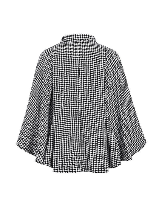 Batwing Sleeves Long Sleeves Houndstooth Tied Waist Stand Collar Cape Outerwear