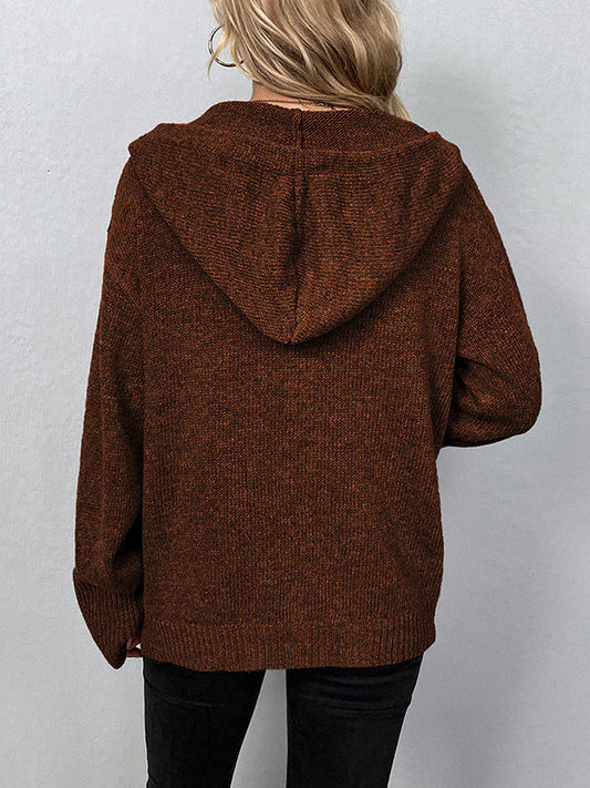 Urban Simple Loose Buttoned Solid Color Jacquard Cardigan Coat