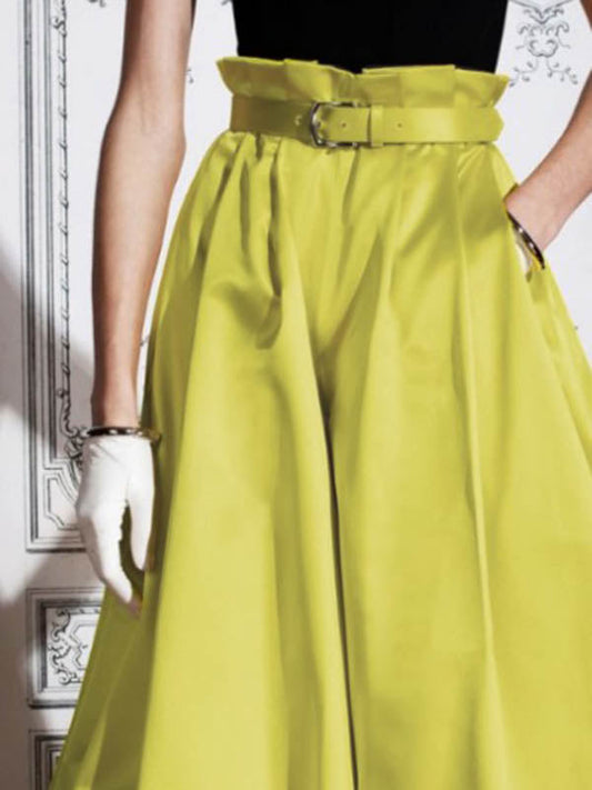 High Waisted Loose Pleated Solid Color Split-Side Skirts