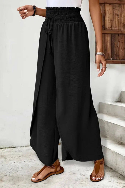 High Waisted Loose Pockets Solid Color Split-Joint Pants Trousers