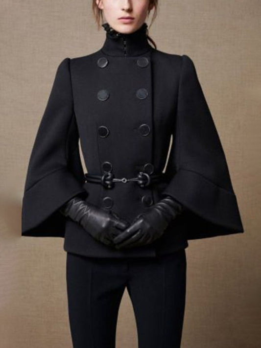 Flared Buttoned Solid Color High Neck Jackets&Coats Outerwear Woolen Coat