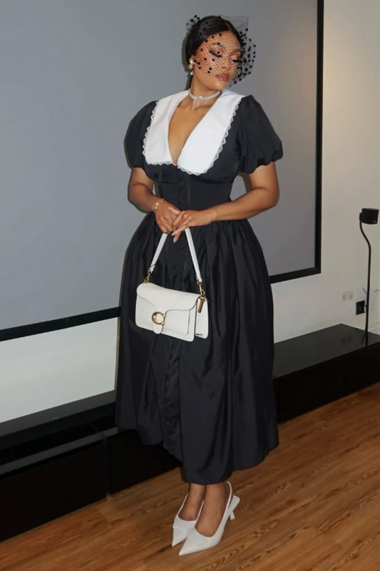 High Waisted Polka Dot Square-Neck Maxi Evening Dresses