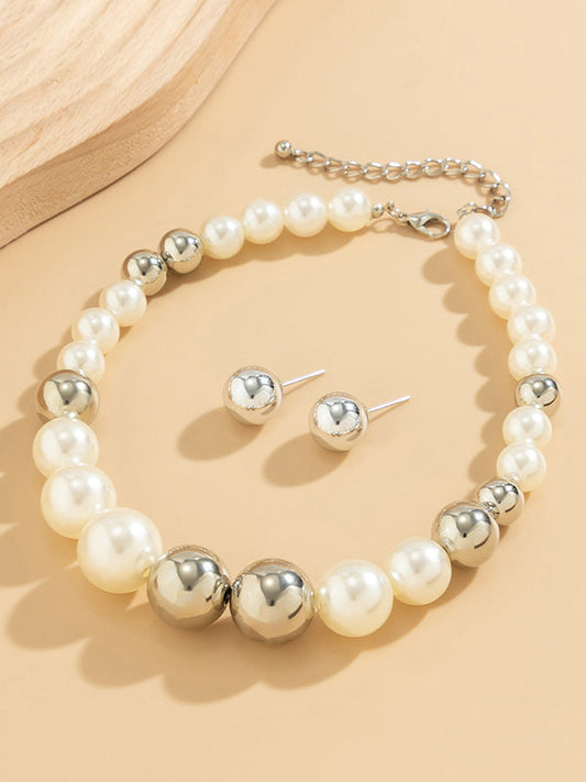 Beaded Solid Color Split-Joint Necklaces + Earrings Accessories Three Pieces