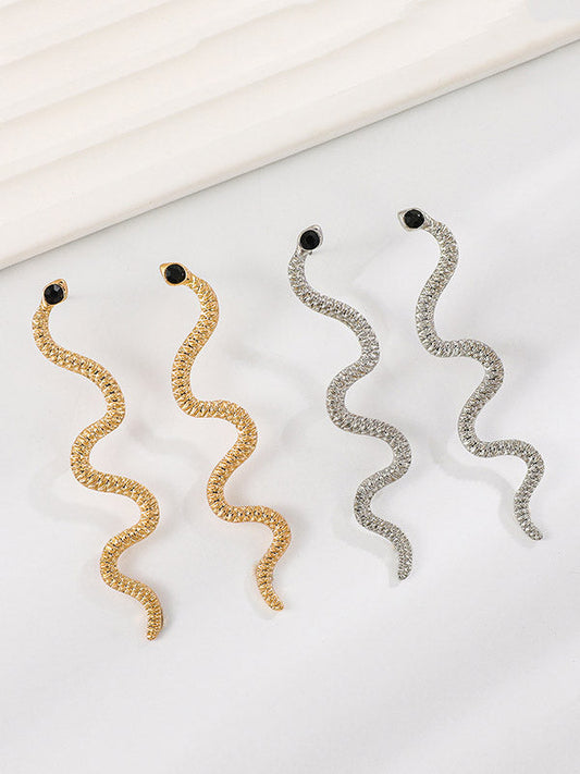 Geometric Rhine Stones Snake Shape Solid Color Drop Earrings