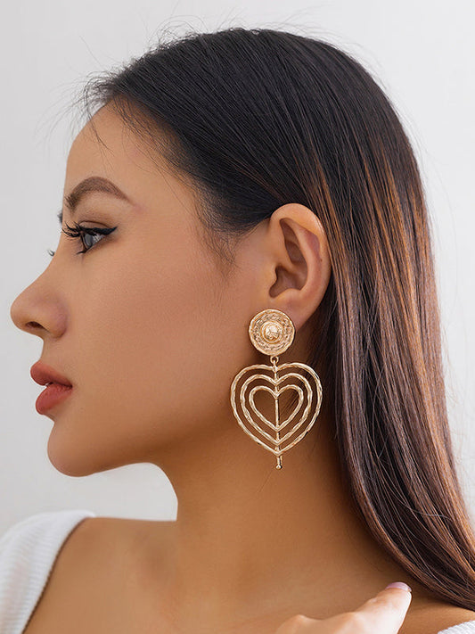 Normcore Geometric Heart Shape Hollow Solid Color Drop Earrings