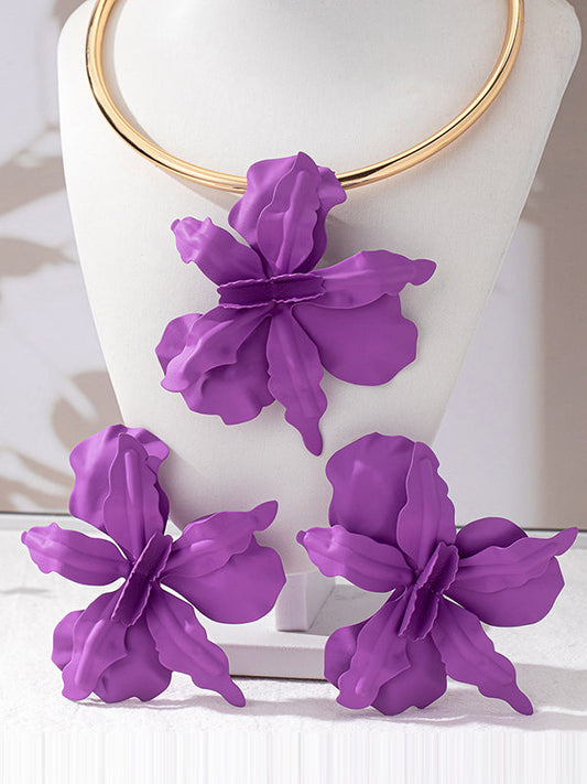 Flower Shape Bracelet + Earrings + Rings Accessories Three Pieces