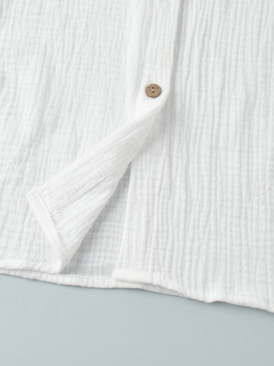 Loose Puff Sleeves Pleated Solid Color Split-Joint Lapel Blouses&Shirts Tops