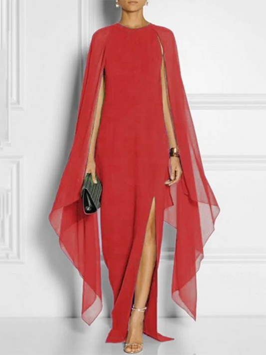 Batwing Sleeves Loose See-Through Solid Color Tasseled Mock Neck Maxi Dresses