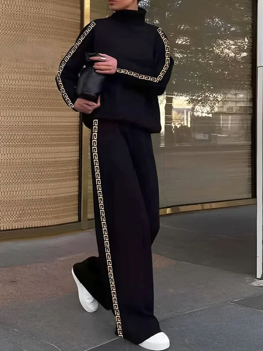 Comfort Long Sleeves Turtleneck Sweatshirts + Drawstring Wide Leg Pants Two Pieces Set