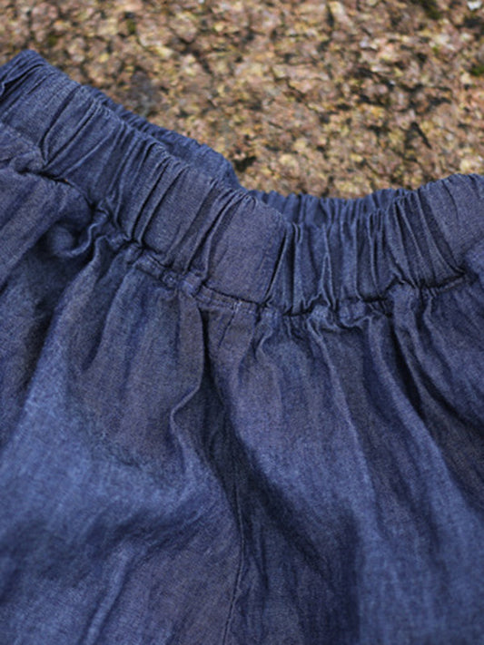 Loose Pleated Solid Color Jean Pants Bottoms Trousers