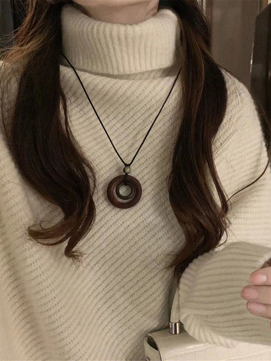 Casual Loose Solid Color High-Neck Long Sleeves Knitwear