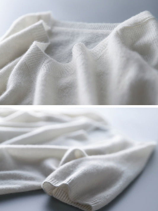Half Sleeves Loose Solid Color Off-The-Shoulder Knitwear Pullovers Sweater Tops