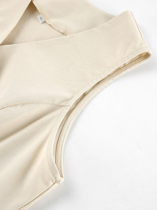 Sleeveless Split-Joint V-Neck Vest + High Waisted Pleated Shorts Two Pieces Set