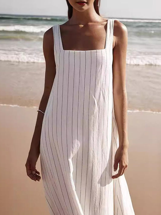 A-Line Loose Striped Square-Neck Maxi Dresses