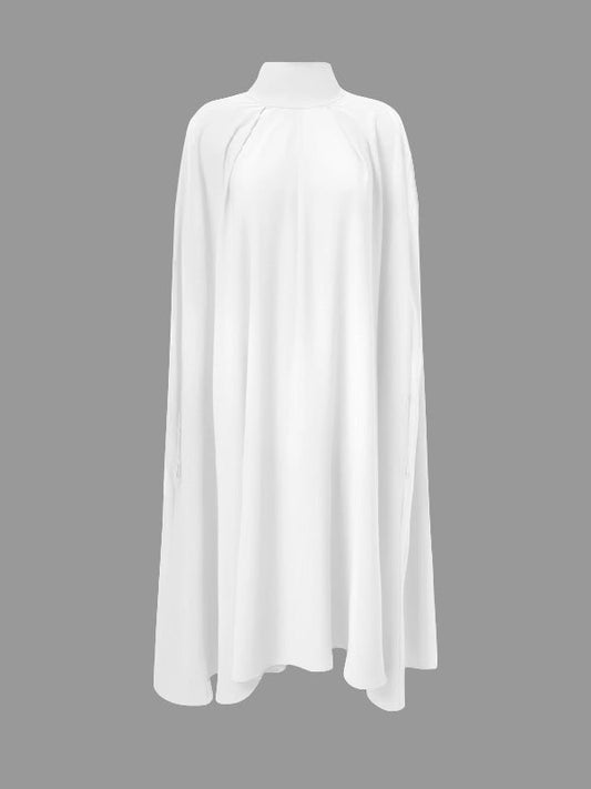 Urban Buttoned Solid Color Stand Collar Flared Sleeve Loose Midi Dress