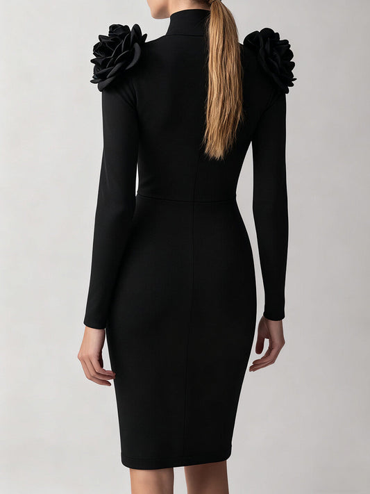 Bodycon High Waisted Solid Color Three-Dimensional Flower High Neck Mini Dresses