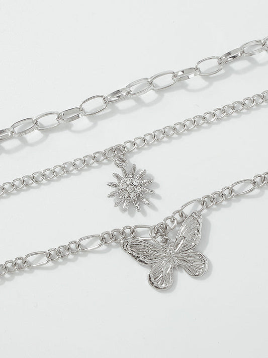 Chains Flower Shape Rhine Stones Necklaces Accessories
