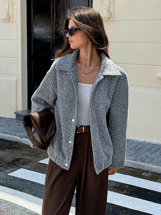Long Sleeves Loose Buttoned Solid Color Lapel Cardigan Tops Outerwear