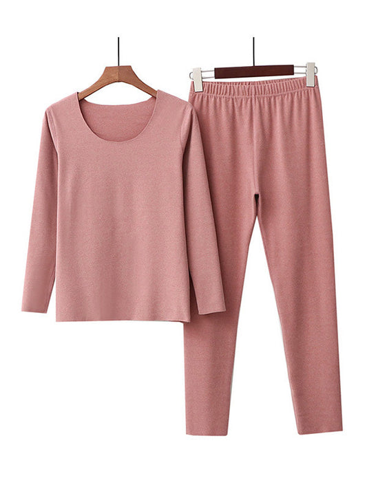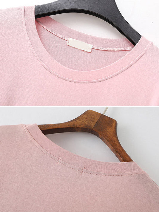 2PCS Plus Size Solid Color Round-Neck Top&Bottom Pajama Set