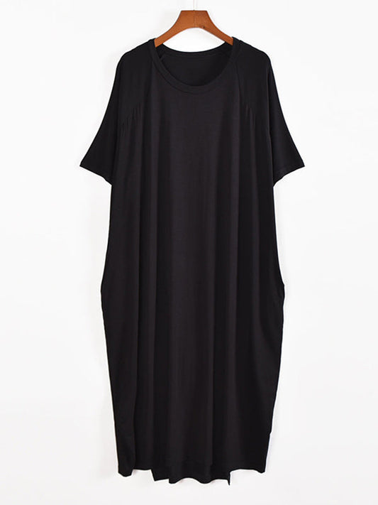 Simple Loose Half Sleeves Solid Color Round-Neck Pajamas Dress