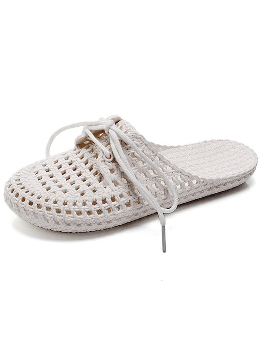 Hollow Lace-Up Round-Toe Mules&Slides Slippers