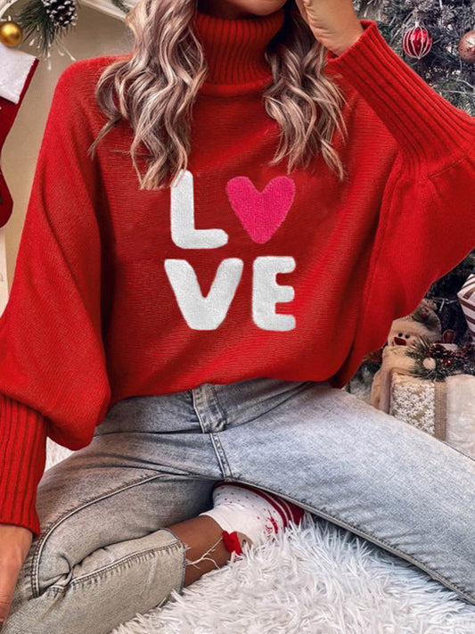 Long Sleeves Loose Contrast Color Printed Split-Joint High Neck Sweater Tops
