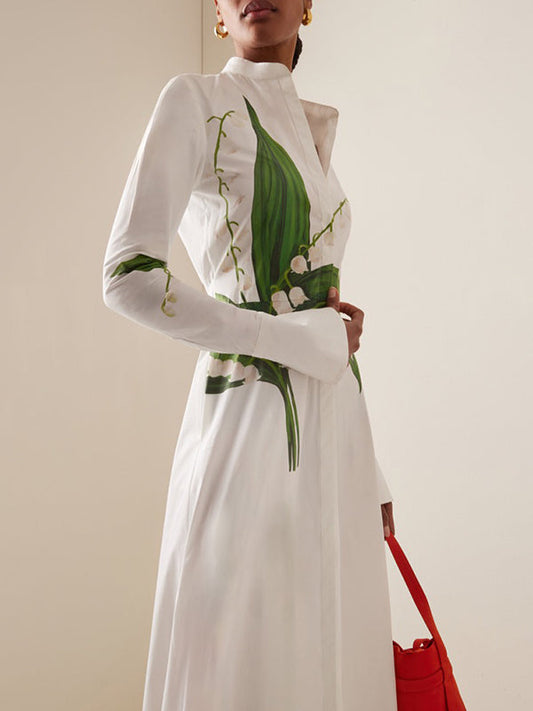 A-Line Long Sleeves Buttoned Flower Print Round-Neck Maxi Dresses