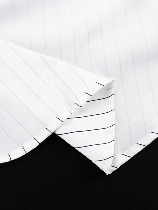 Irregular Clipping Long Sleeves Split-Joint Striped Lapel Blouses