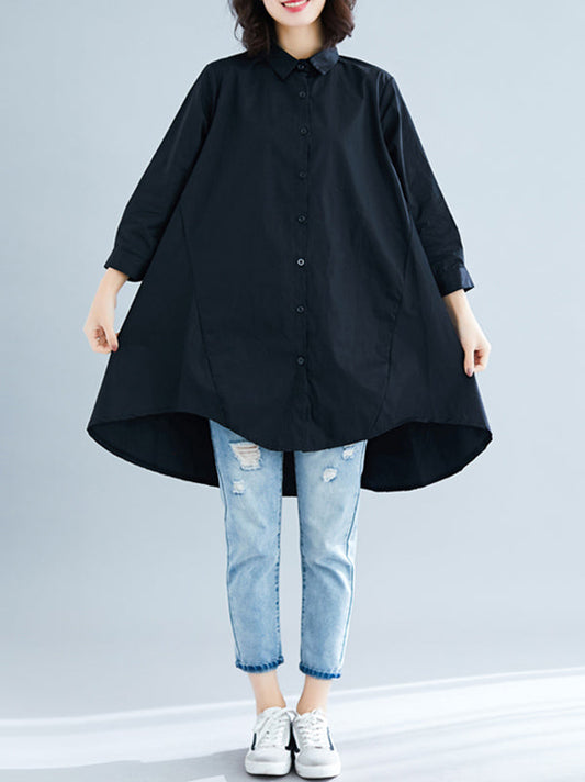 Long Sleeves Loose Solid Color Split-Joint Lapel Blouses