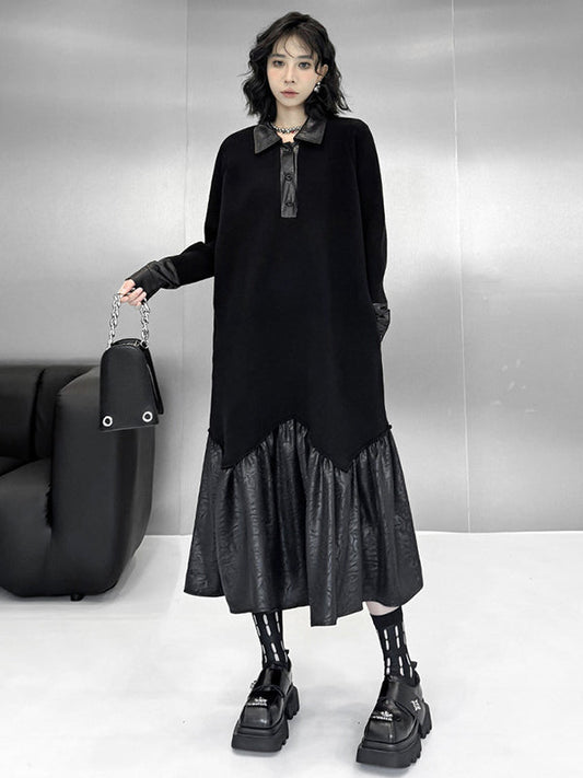 Long Sleeves Pleated Ruffled Split-Joint Lapel Maxi Dresses Sweater Dresses