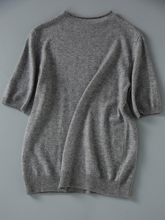 Simple Solid Color Round-Neck Short Sleeves Sweater