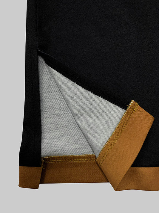 Long Sleeves Plus Size Contrast Color Ruffle Trim Split-Joint Mock Neck T-Shirts Tops