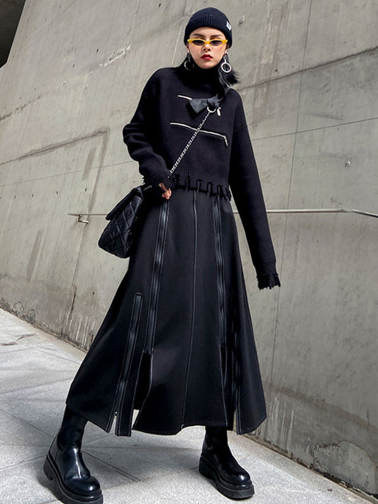 A-Line Irregularity Solid Color Split-Joint Split-Side Zipper Skirts Bottoms