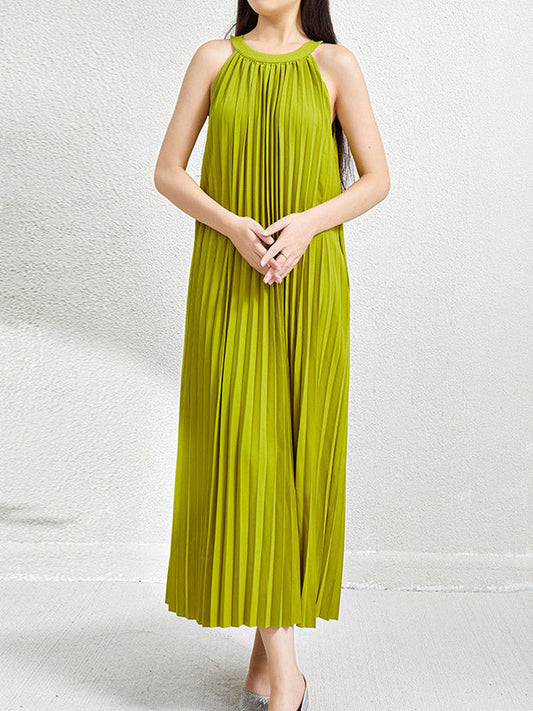 Loose Sleeveless Hollow Pleated Pockets Solid Color Halter-Neck Maxi Dresses