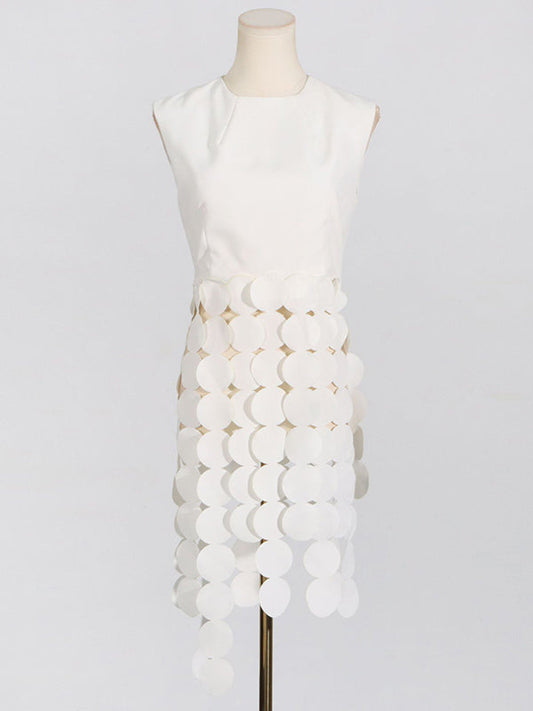 Sleeveless Polka-Dot Solid Color Split-Joint Tasseled Round-Neck Vest Top