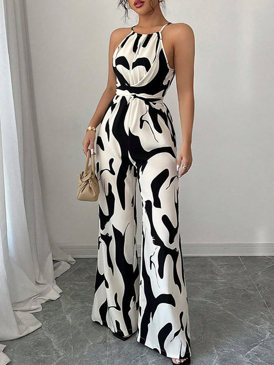 Loose Sleeveless Contrast Color Pleated Spaghetti-Neck Jumpsuits