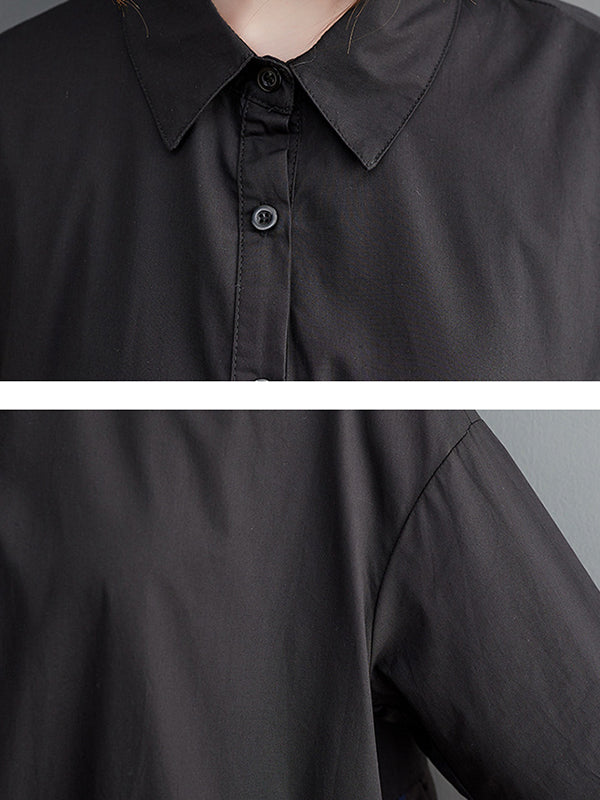 A-Linie Lange Ärmel Kontrastfarben Plisseedruck Split-Joint Polo Midikleider
