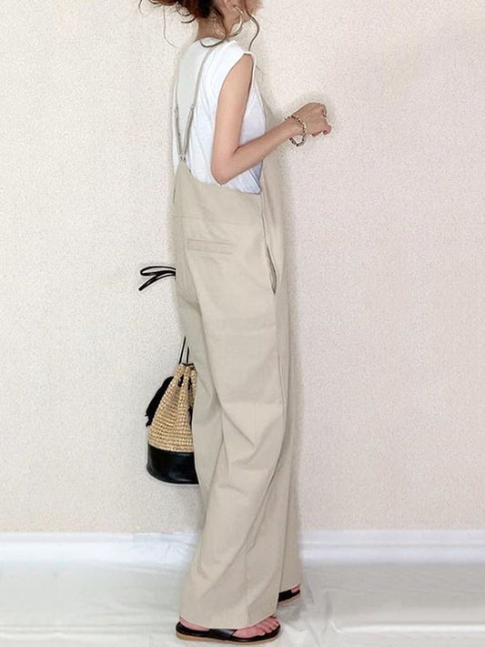 Original Creation Sleeveless Loose Solid Color Square-Neck Overalls