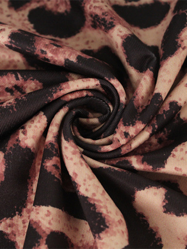 Bodycon Long Sleeves Leopard Printed Round-Neck Maxi Dresses