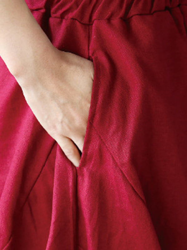 High Waisted Loose Drawstring Elasticity Solid Color Split-Joint Cropped Trousers Pants