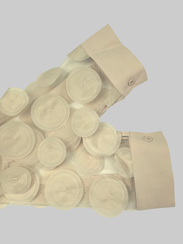 Long Sleeves Loose Buttoned Mesh Polka-Dot Split-Joint Lapel Blouses&Shirts Tops