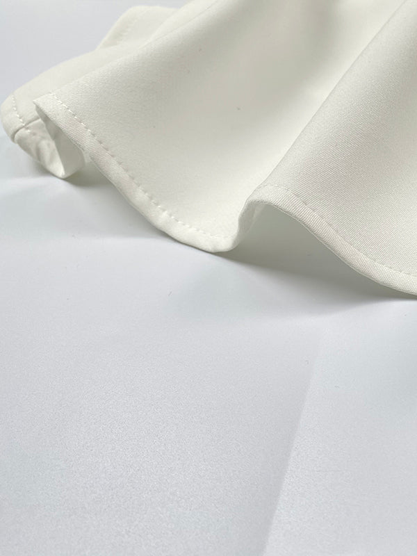 Long Sleeves Loose Pleated Solid Color Split-Front Off-The-Shoulder Blouses&Shirts Tops