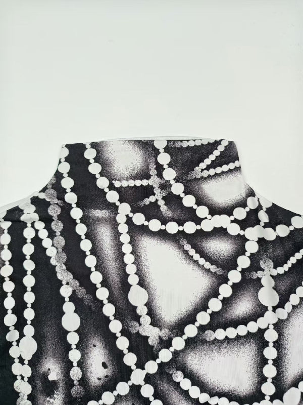 Long Sleeves Skinny Printed Striped High Neck T-Shirts Tops