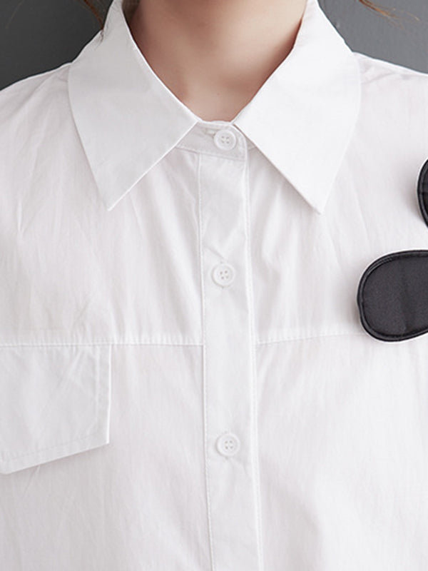 Loose Short Sleeves Elasticity Pleated Split-Joint Lapel Midi Dresses