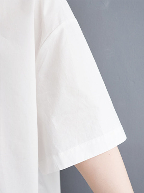 Loose Short Sleeves Floral Printed Lapel Blouses