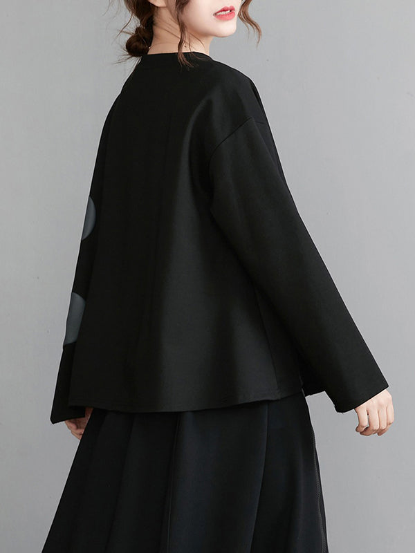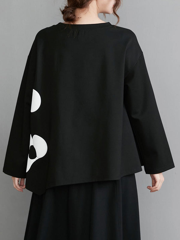 Original Loose Flower Printed Round-Neck Long Sleeves T-Shirt Top