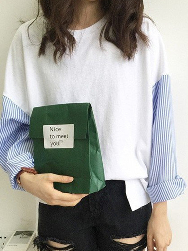 Striped Split-Joint Plus Size Loose Long Sleeve Shirt Tops